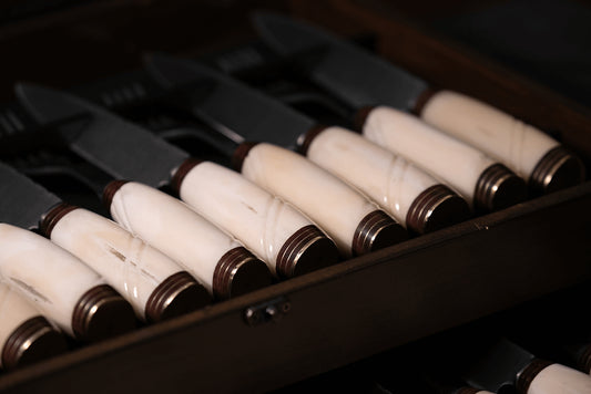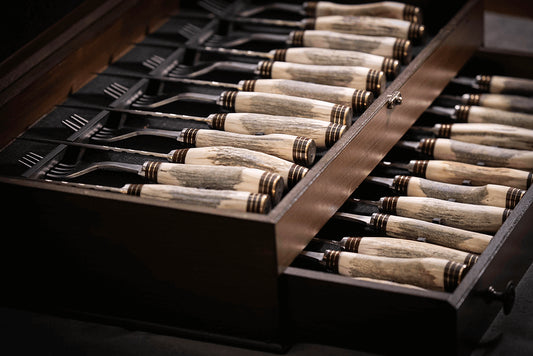 Wooden Box for Knife and Fork Set with Deer Antler and Wood Handles